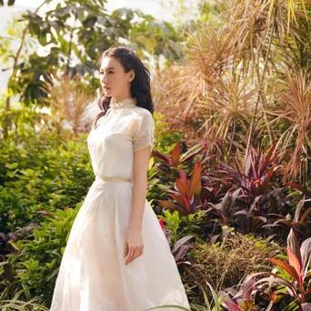 一袭蕾丝白裙清纯无比,完全没老态!